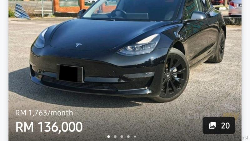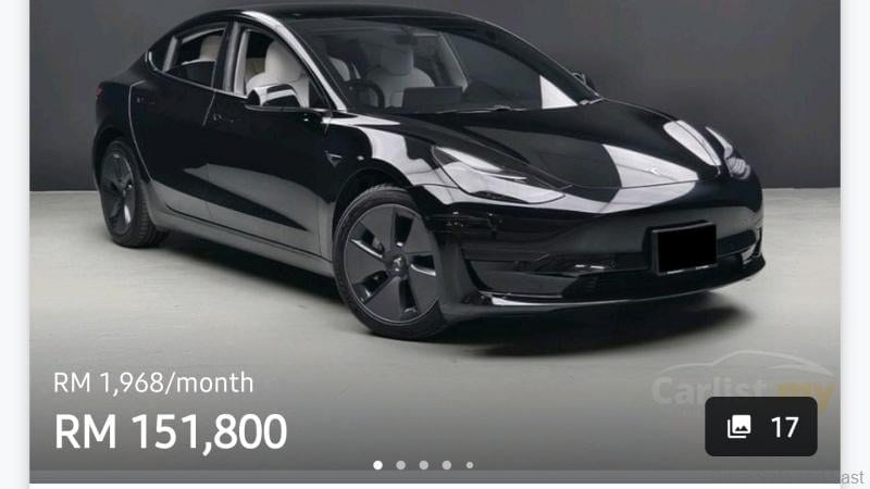 On top of that, the Tesla Model 3, with pre-owned 2023 variants available from RM145,000 on average. The lowest price unit I found on Carlist was RM129,000.