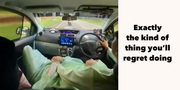 There’s a new video making its way around social media showing a couple in a first generation Perodua Alza. In the video, the lady lies down across the Alza’s front row bench on the driver’s lap while the car is being driven at speed. It’s a rather brief video that shows her only lay down for a few seconds before getting back up. Even though we can assume she puts her safety belt back on, we have to address the big safety issue in case it isn’t obvious to the younger (or perhaps older) generation of drivers. This sort of thing may seem fun or interesting to do, but a stunt like this is not worth the risk.