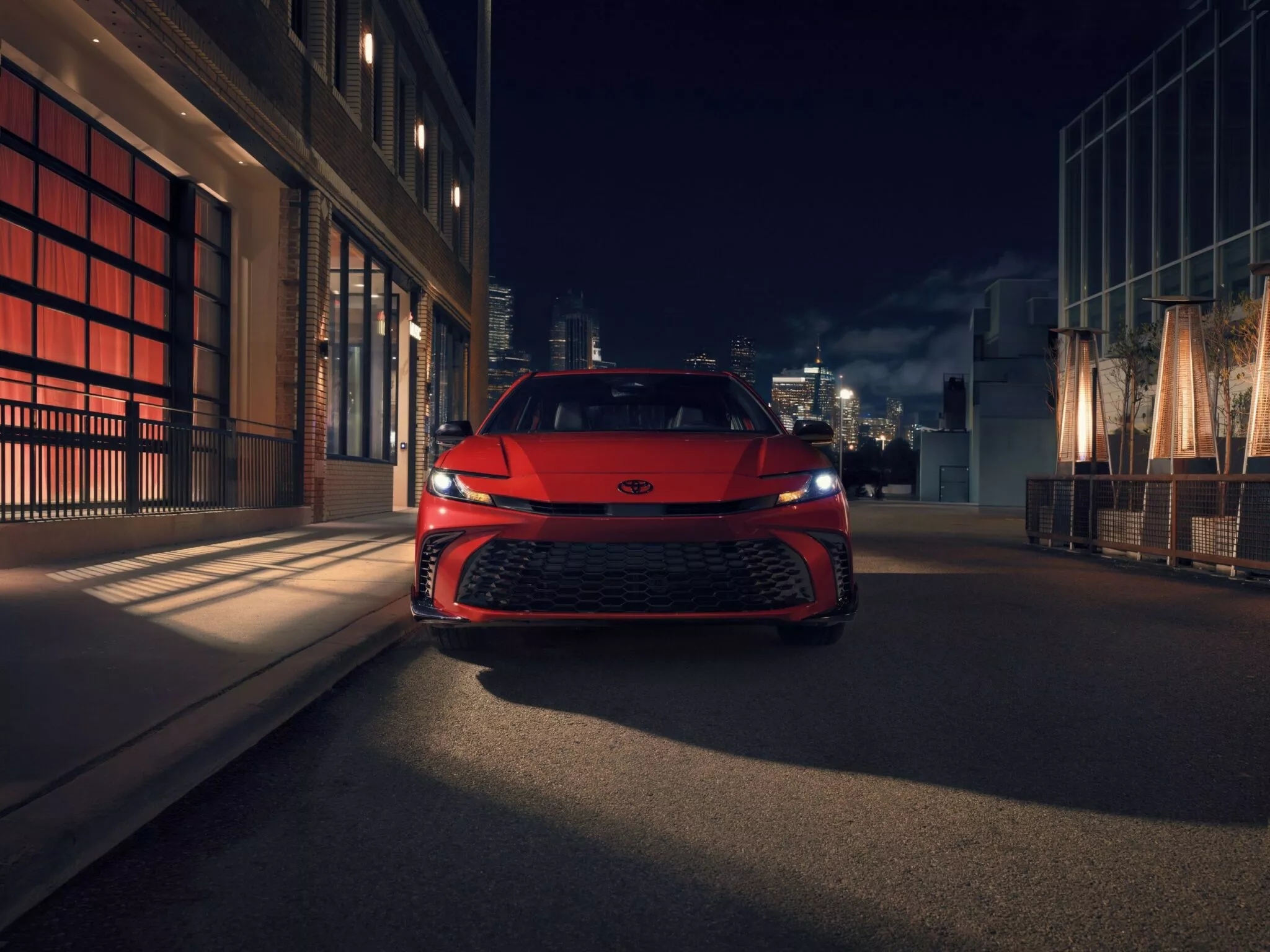 The new Toyota Camry cabin also features aluminum sport pedals and a leather-wrapped steering wheel with paddle shifters, reinforcing the car’s athletic personality. Standard equipment includes a 7-inch digital instrument cluster, an 8-inch touchscreen infotainment system and a wireless smartphone charging pad.