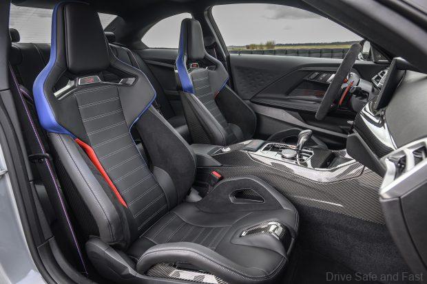 Standard forged M light-alloy wheels and a CFRP boot lid with ducktail spoiler also contribute to the M2 CS’s lighter profile.