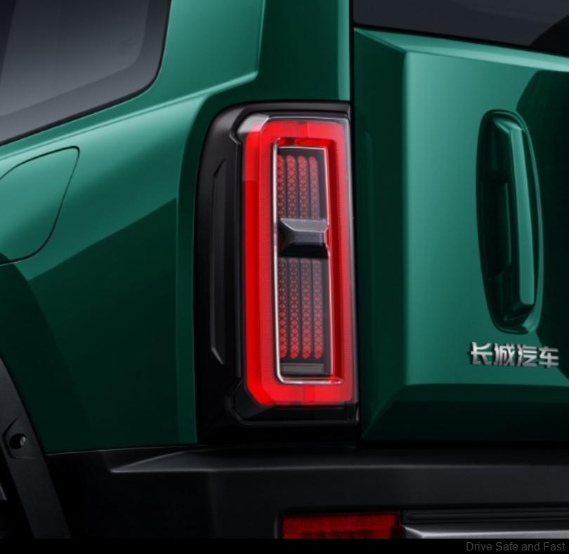 At the rear, vertical taillights utilize 300 red LEDs at 628nm. Built for off-road performance, the Haval Raptor boasts a 25° approach angle, 32° departure angle, 223 mm ground clearance (unladen), a wading depth of up to 580 mm, and a towing capacity of 1,600 kg. Under the hood is a 2.0-liter turbocharged engine making an impressive 235hp and 385Nm of torque.