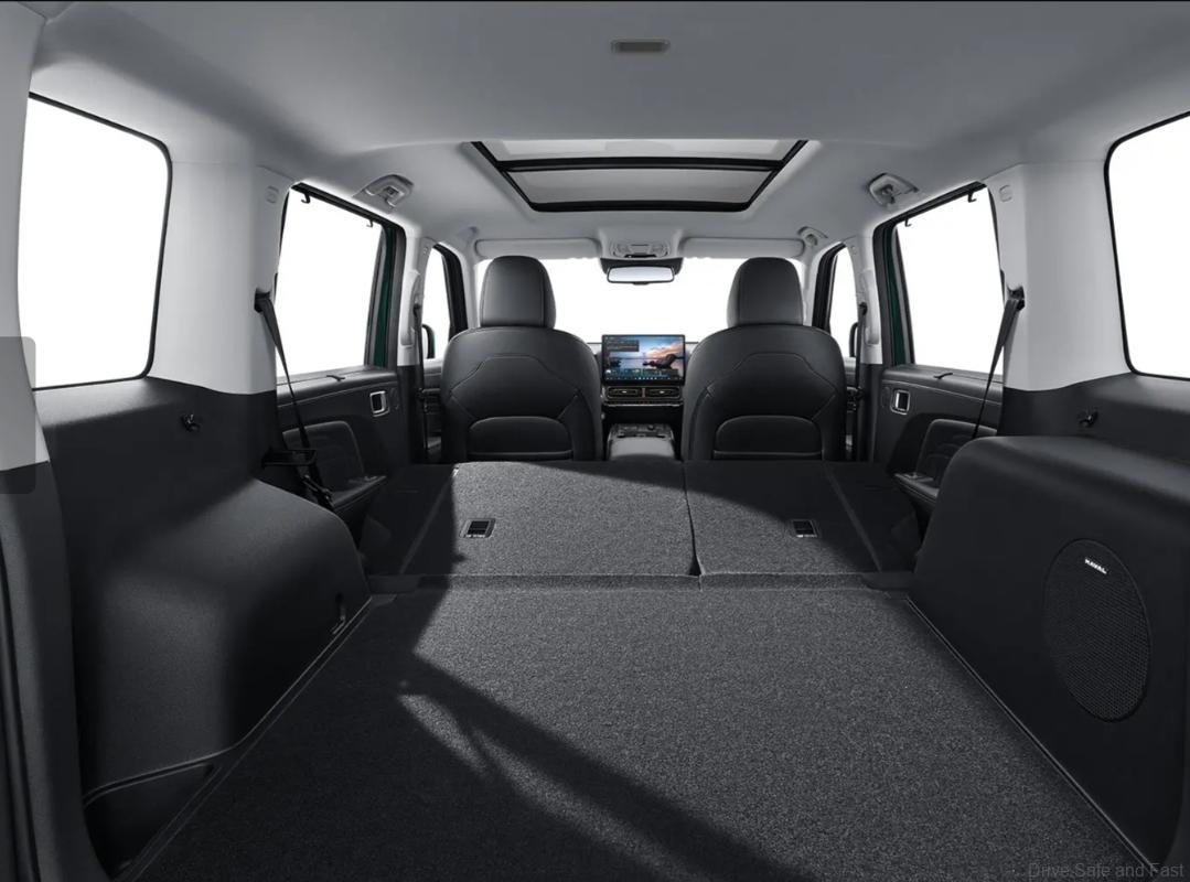 Moreover, both share a 2738mm wheelbase and offer tire options of 245/60 R18 or 255/60 R19. Exterior color choices include green, two shades of gray, black and white. The overall design preserves the PHEV’s rugged boxy shape, with traditional door handles and roof racks. It also features a redesigned front grille with vertical elements and rectangular headlights.