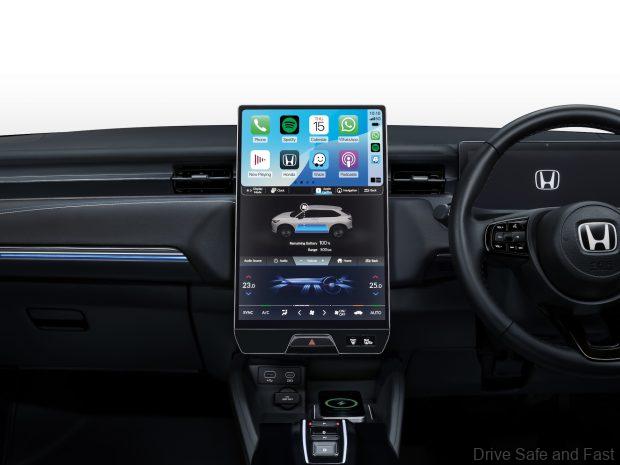 The e:N1’s clean, futuristic design is marked by a sleek front fascia, LED lights, 18-inch dual-tone alloy wheels, and a new white Honda “H” badge that signals its electric identity. Inside, a sophisticated cabin awaits with blue ambient lighting, a 10.25-inch digital driver display, and a 15.1-inch advanced touchscreen with a three-tier interface supporting Wireless Apple CarPlay, Wired Android Auto, and navigation.