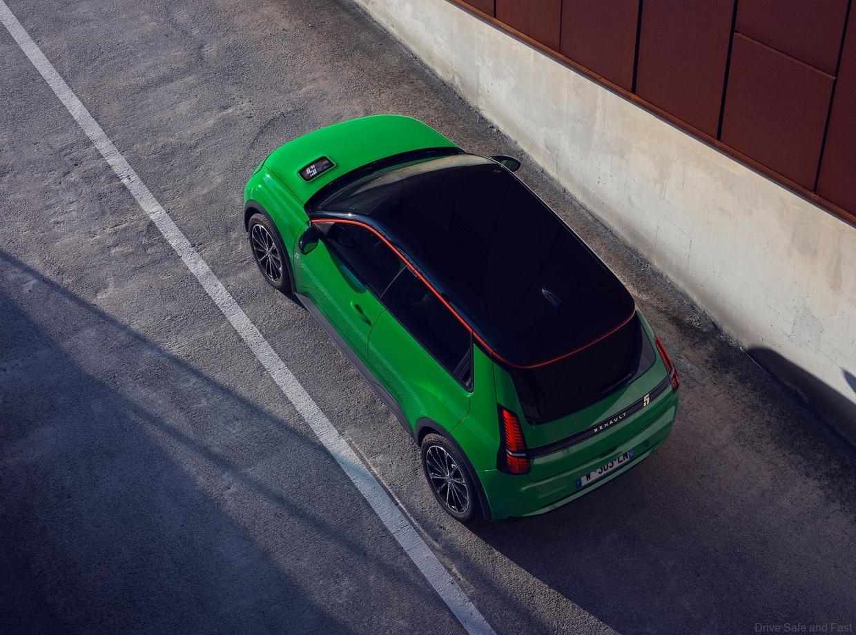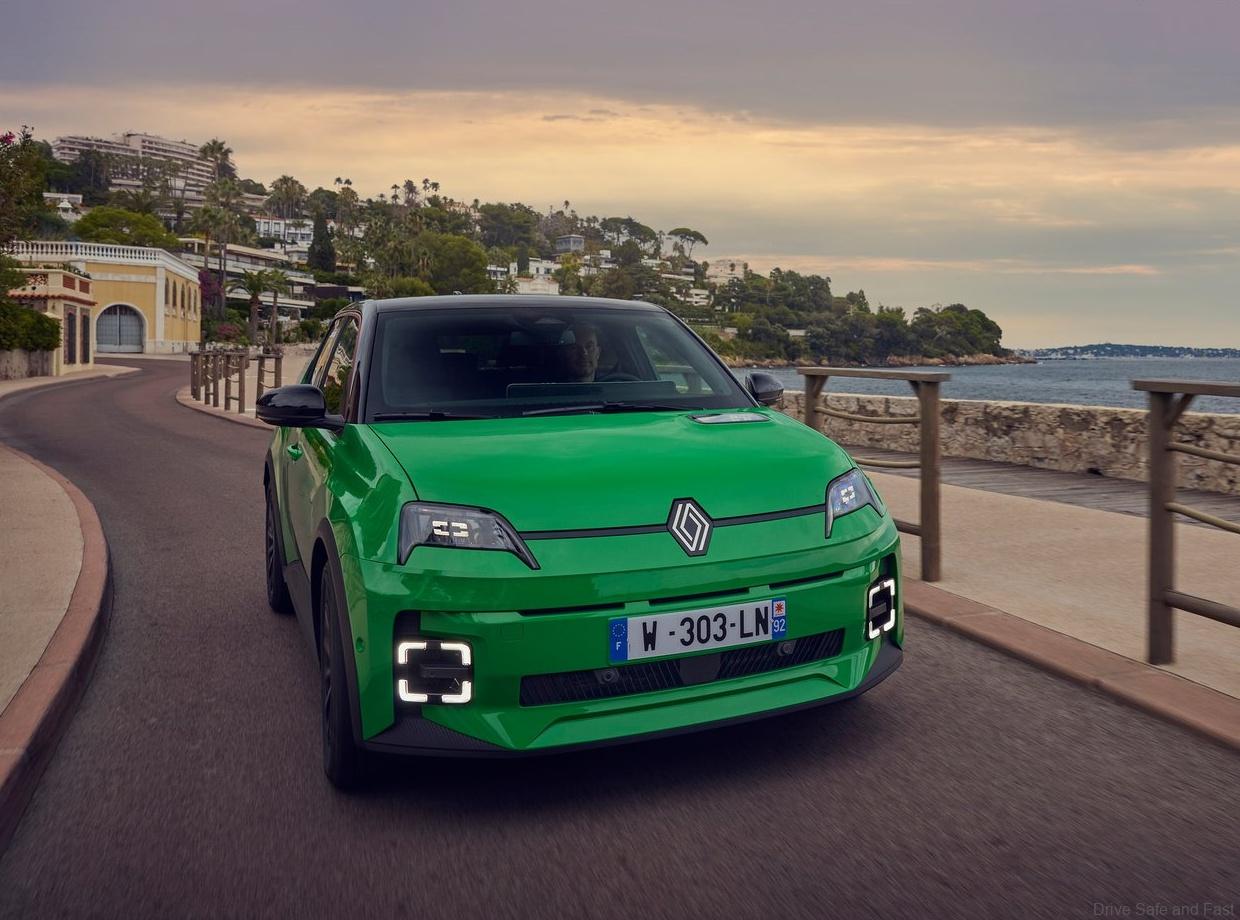 Moreover, design cues from the original Renault R5, Supercinq, and R5 Turbo are present throughout. A digital “5” replaces the old bonnet vent grille as a charging indicator, and the LED headlights “wink” as a welcome gesture. Retro-inspired bright colors like Pop Yellow and Pop Green nod to its heritage, while the floating LED headlamp design adds a futuristic edge.