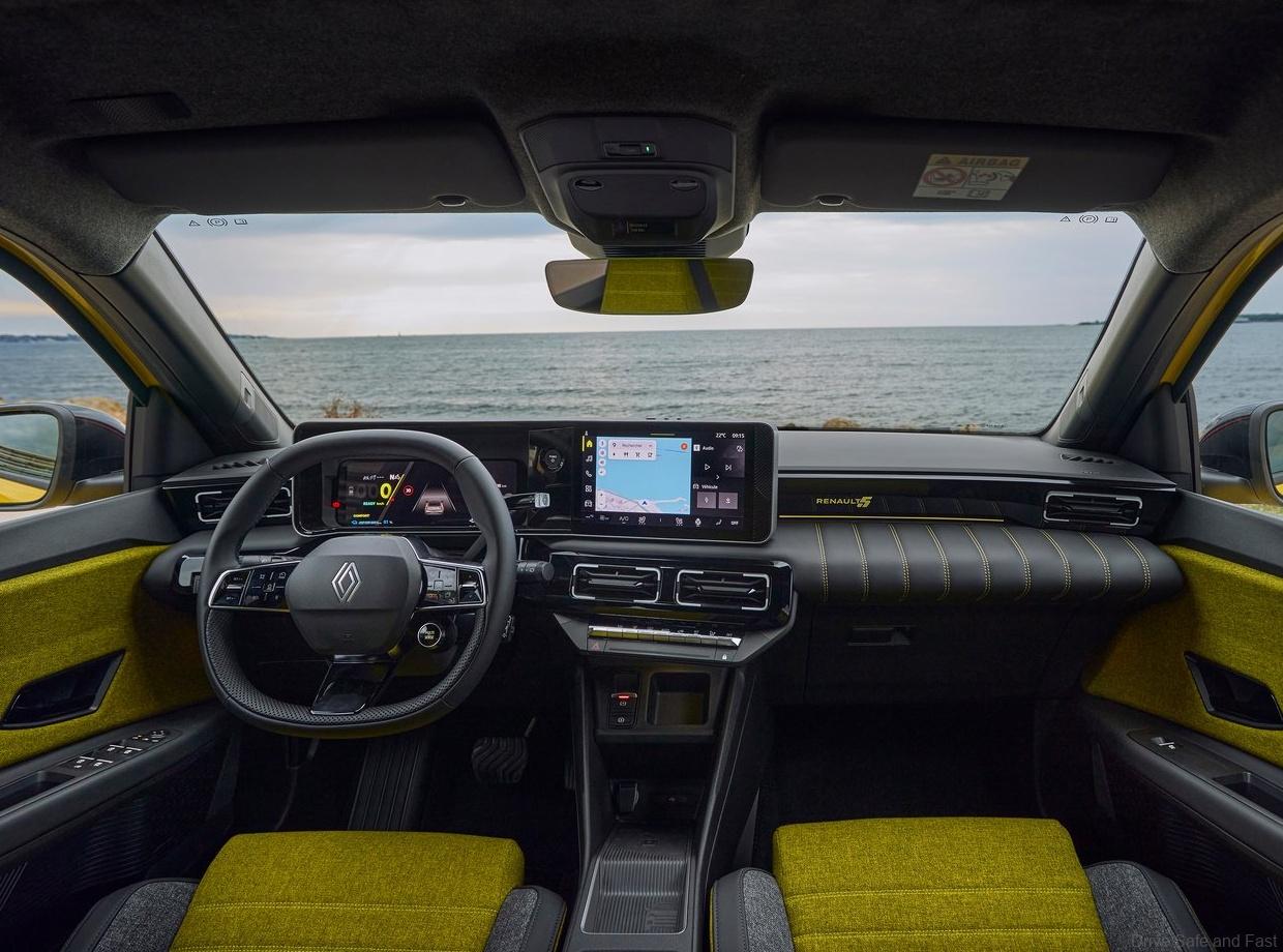 Inside, the R5 E-Tech offers a minimalist dashboard, denim or fabric upholstery made from recycled materials, and dual 10-inch digital displays. Higher trims feature OpenR Link with Google built-in and an optional avatar assistant, Reno. The Iconic Five trim includes unique seat embroidery and upgraded materials.