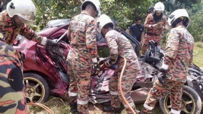 A tragic accident claimed the life of a 32-year-old man and left his fiancée critically injured when their car collided with a lorry along Kilometer 147 of Jalan Kuantan-Seremban, near Simpang Melati in Muadzam Shah earlier today. The deceased has been identified as Muhamad Nasri Sulaiman, a resident of Felda Jenderak Utara in Temerloh.