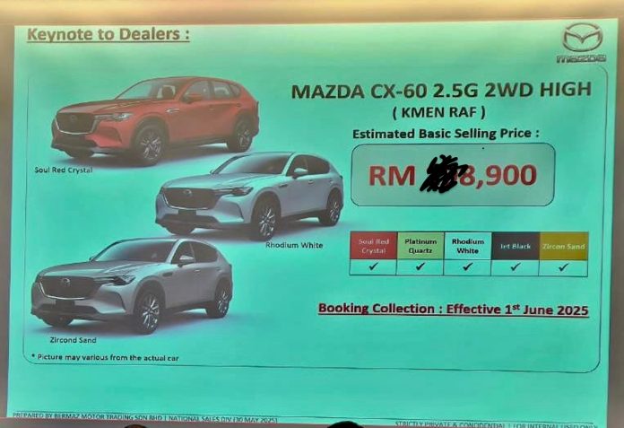 A leaked keynote to dealers from Bermaz shows the Malaysian pricing and powertrain for the Mazda CX-60.