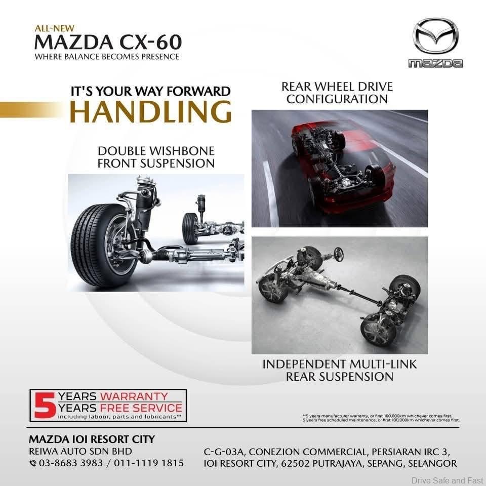Moreover, while full local specifications are yet to be officially detailed, global models of the Mazda CX-60 are known for their luxurious materials, cutting-edge infotainment, and a focus on comfort and dynamic handling. One of the most attractive aspects of the upcoming CX-60 launch in Malaysia is the comprehensive ownership package that Mazda is offering.