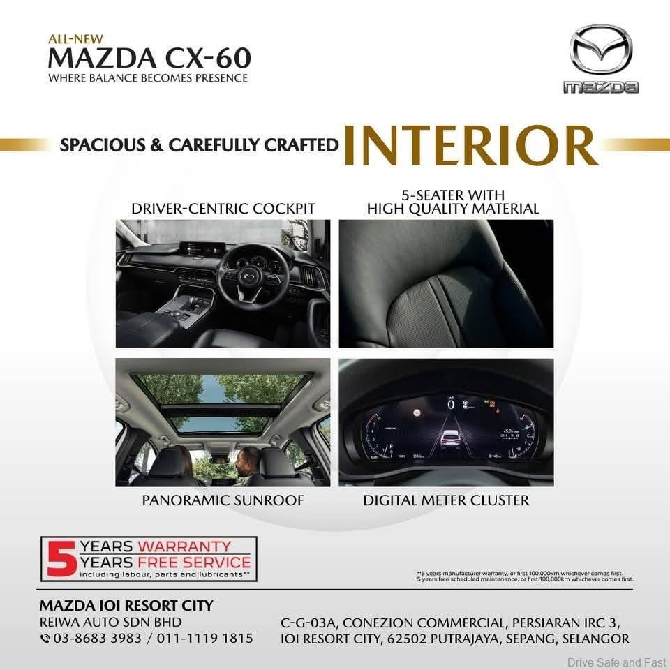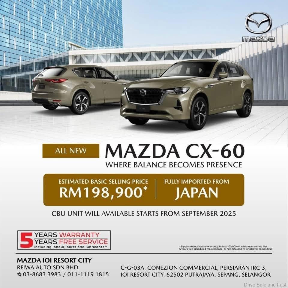 With its combination of sophisticated design, advanced technology, and a worry-free ownership program, the Mazda CX-60 is poised to make a strong impression in Malaysia’s competitive SUV market. Interested buyers can expect more detailed announcements closer to the official launch, with initial deliveries of the CBU units anticipated to begin from September 2025.
