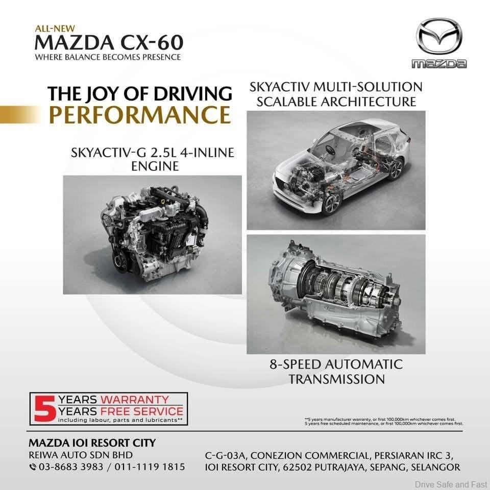 Moreover, while full local specifications are yet to be officially detailed, global models of the Mazda CX-60 are known for their luxurious materials, cutting-edge infotainment, and a focus on comfort and dynamic handling. One of the most attractive aspects of the upcoming CX-60 launch in Malaysia is the comprehensive ownership package that Mazda is offering.