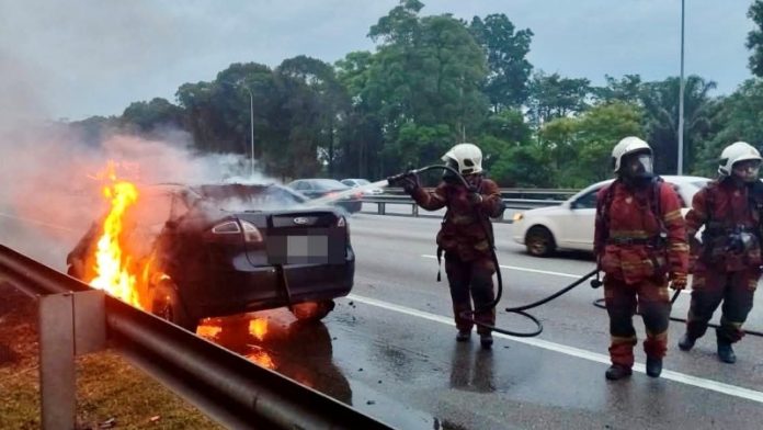 The incident took place at Kilometer 10.5 of the North-South Highway Hubungan Tengah (ELITE), towards USJ. The nurse in a Ford Fiesta, was driving when the vehicle reportedly began emitting smoke and quickly caught fire. Thanks to her quick thinking and calm response, she was able to exit the vehicle safely before the flames engulfed most of the car.