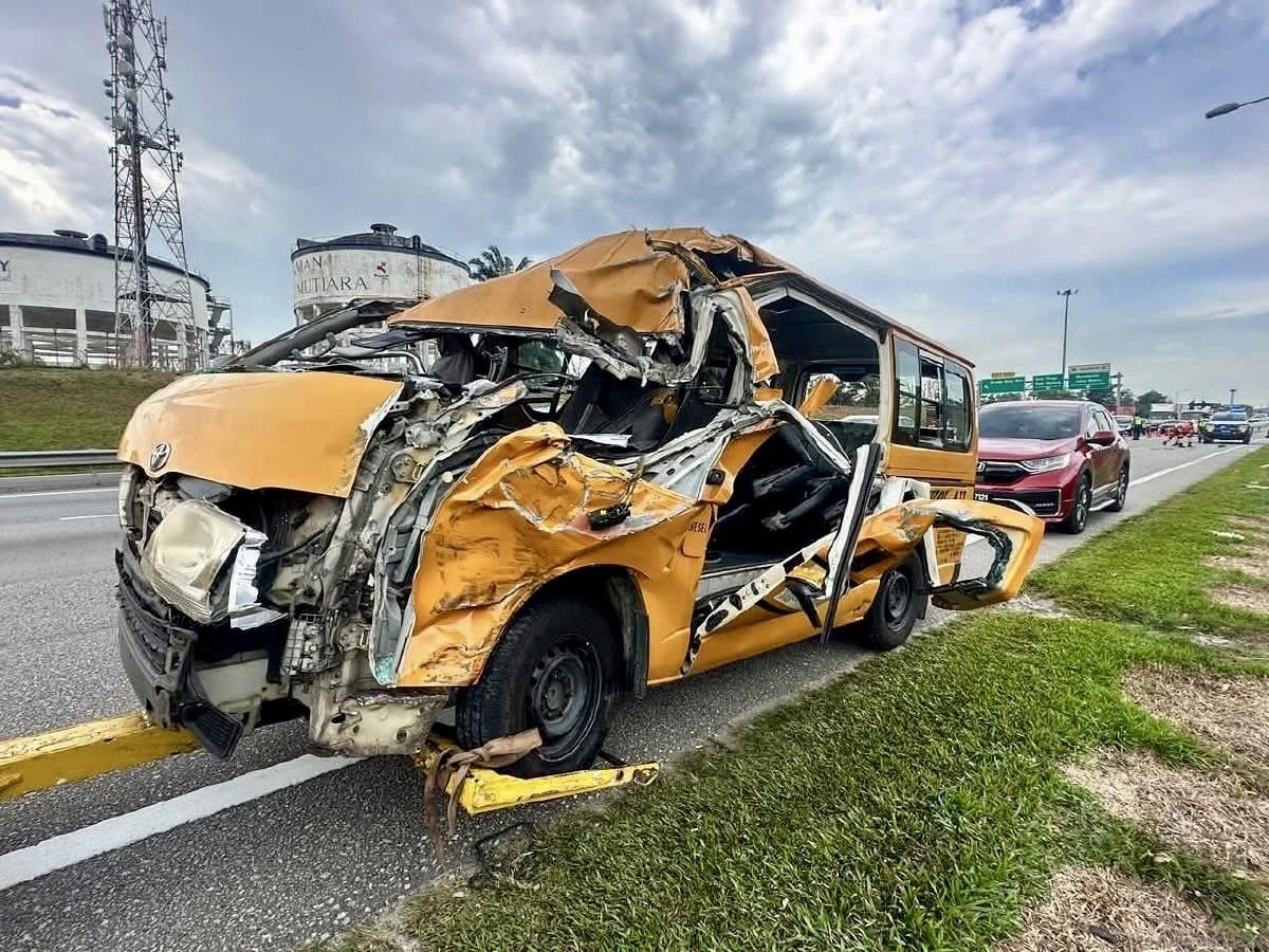 A total of 22 schoolchildren experienced a distressing incident earlier this afternoon when the van they were traveling in collided with a cement-laden trailer along the North-South Expressway (PLUS Highway), near the Dato Onn Bandar area.