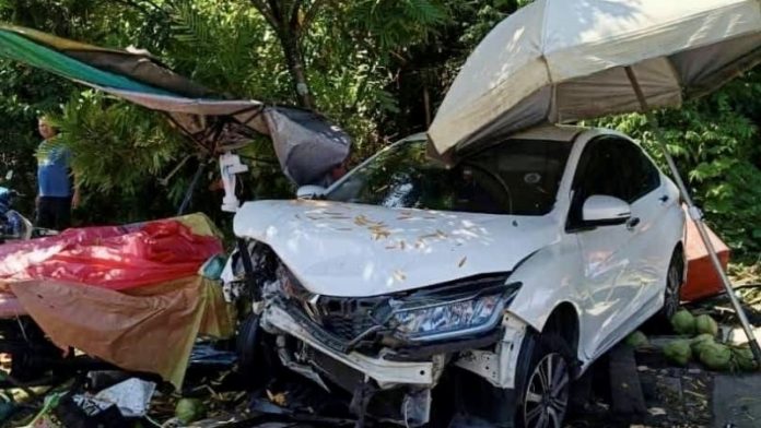 A coconut water vendor and two elderly individuals sustained injuries following a road accident near the Kuala Kangsar District Police Quarters earlier today. The incident occurred at approximately 11:30 a.m. when a car driven by an elderly couple crashed into the vendor’s roadside stall.