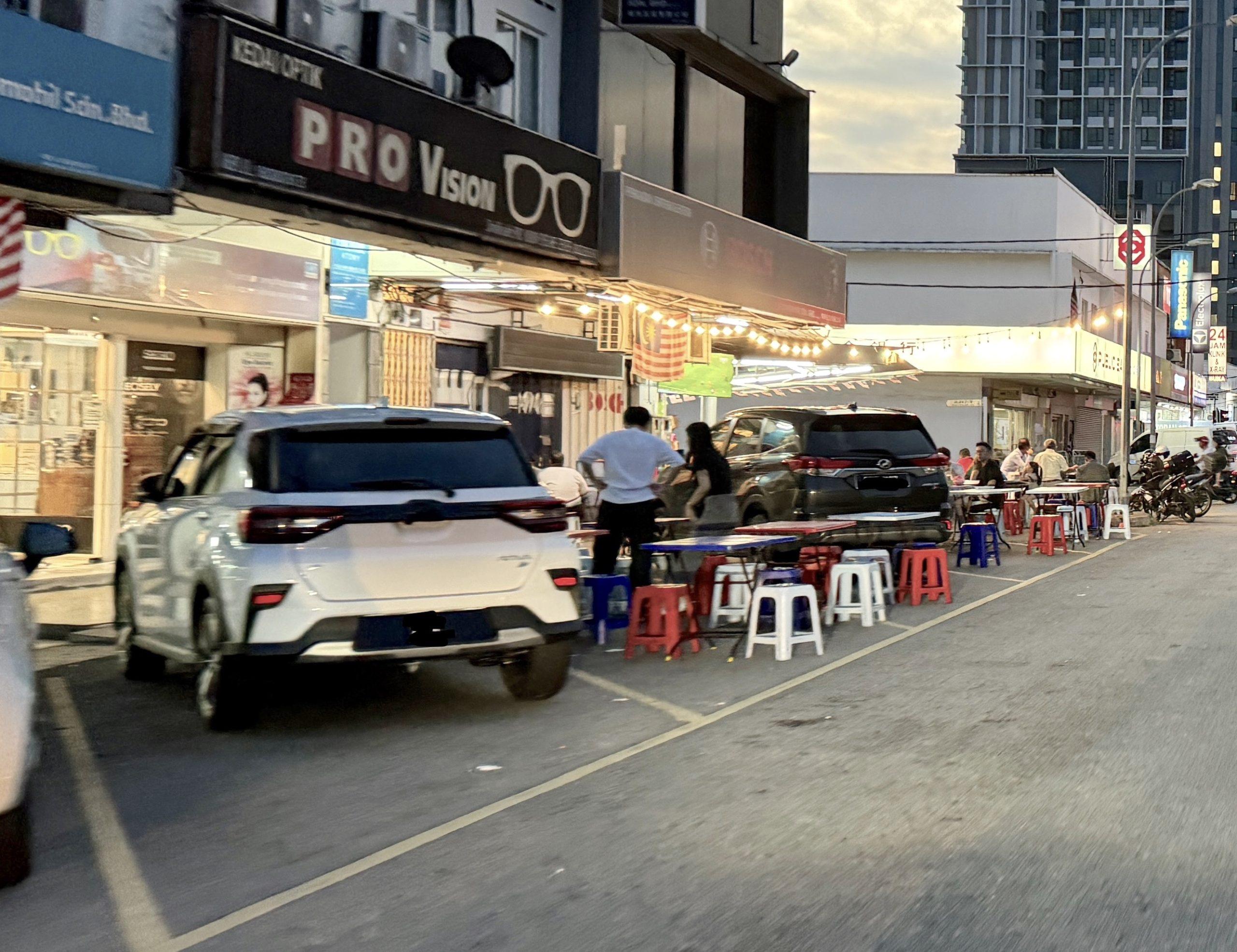 Question? Will these EV chargers take away previous parking lots in Petaling Jaya, just like how parking lots are ‘TAKEN AWAY’ by Mamak restaurant operators every evening (see picture below)?