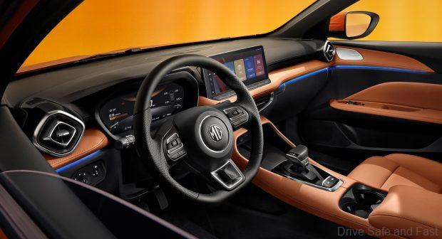 Inside we get the most drastic improvements. Both the instrument cluster and the infotainment unit are now 12.3″ across but there is a smaller 10.25″ version of the infotainment unit on the lower tier model. MG has retained physical buttons here, which is a plus. The interior has a new fun looking orange and black combination. Finally the steering wheel has three spokes and a flat bottom.
