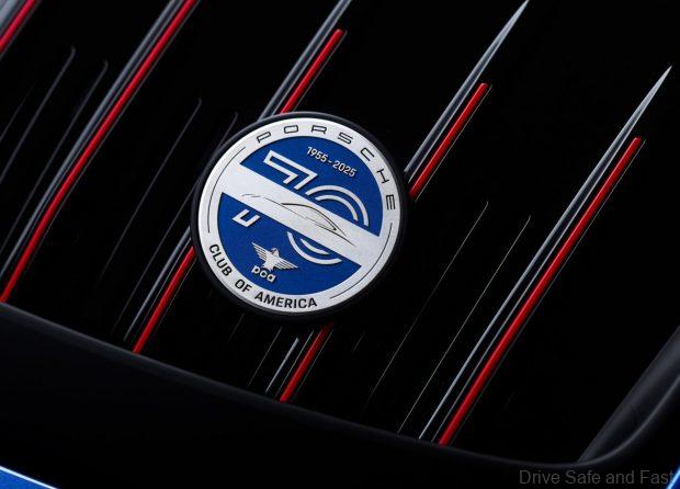 The car also comes with Club Coupé logos on the doors in Brilliant Silver, a rear 911 decal and grille slat inlay. The mirrors are finished in Sholar Blue as well and a final “70 Year PCA” badge is found on the grille.