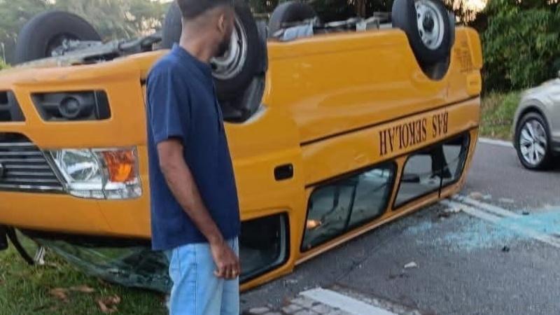 A school van carrying several students overturned early this morning after it struck an uncovered pothole along Jalan Abdul Samad in Johor Bahru. The incident occurred during the morning rush hour, just as students were on their way to school. So how quickly was the van driver going for the van to overturn? Apparently not fast at all.