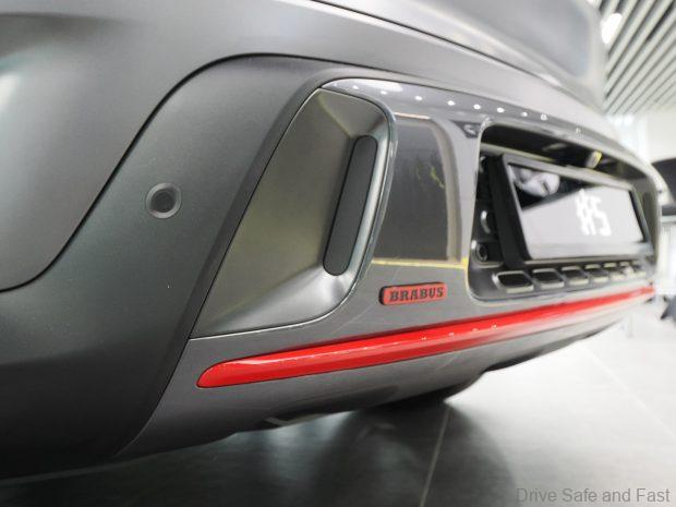 Visually, the bumpers, side sills, rims and spoiler are unique on the BRABUS model. Inside, you get an Alcantara steering wheel, BRABUS red seatbelts, metal sports pedals, and BRABUS logos embroidered into the headrests. The black on red interior also features its own unique patterns versus the PREMIUM spec. You lose the wood trim for metal inserts.