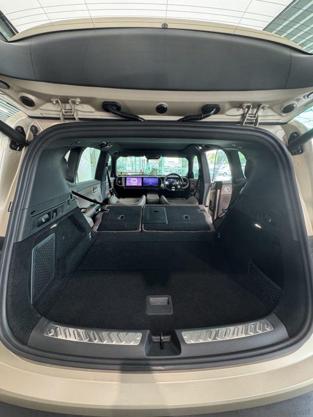 It swings open to reveal a fairly massive boot with storage nets on either side, luggage hooks, a power outlet and a collapsing floor. The boot also gives you access to one-touch seat collapsing levers.