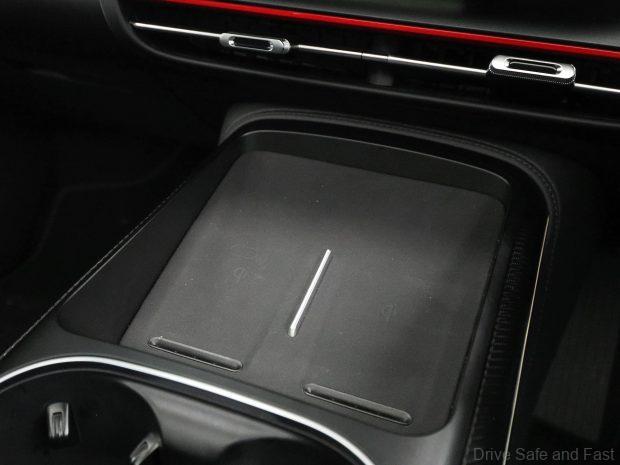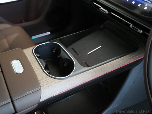 There are dual QI charging pads, cupholders and a centre box between the two front occupants. Underneath this is a massive tiered storage areas.