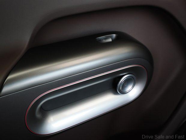 Another first for the #5 is the use of electronic latch mechanisms for the doors. A press of the round thumb buttons and the door releases. A physical override lever is found in the storage bin and it’s illuminated with ambient lighting.
