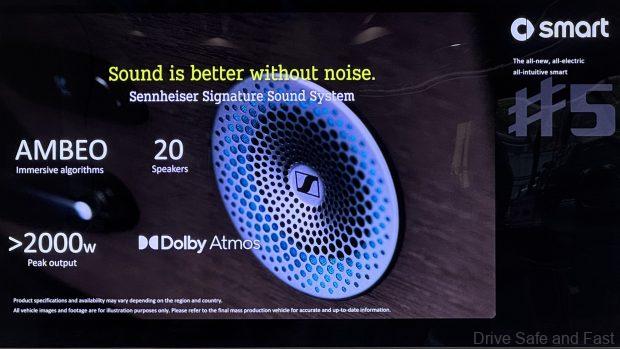 Another tech-related enhancement is the inclusion of Sennheiser audio – a first in the car industry if we’re not mistaken. The Sennheiser Signature Sound System in the smart #5 has 20 speakers and a 2000W peak output with Dolby Atmos and AMBEO Immerseive Algorithms. The highlight of the speaker system is a rising centre speaker on the dashboard, plus ambient lighting integrated into all many of the speaker grilles.