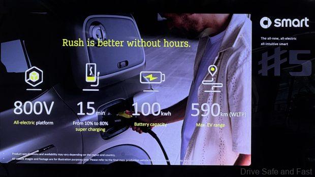 Another benefit of its upgraded size is that it now houses a massive 100kWh NMC battery. This grants the smart #5 Premium a WLTP range rating of 590km, a massive step up from the #3’s 455km. As mentioned before #5 will probably not receive the lower range LFP battery pack in Malaysia as no Pro specification was shown during the preview. The NMC battery here has undergone many hundreds of tests that exceed national safety standards for protection by many degrees.