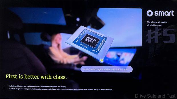 Tech is also upgraded meaningfully in other areas. The entire vehicle is powered by an x86 processor – the AMD V2000, rather than an ARM chip. x86 chip design is usually found in Windows PCs and laptops. These draw more power than smartphone chips, but they’re more general purpose and tend to be more powerful, broadly-speaking. From our understanding, the Model 3 and Model Y used the predecessor of the AMD V2000, and the smart #5 is the first vehicle to feature this new chip.