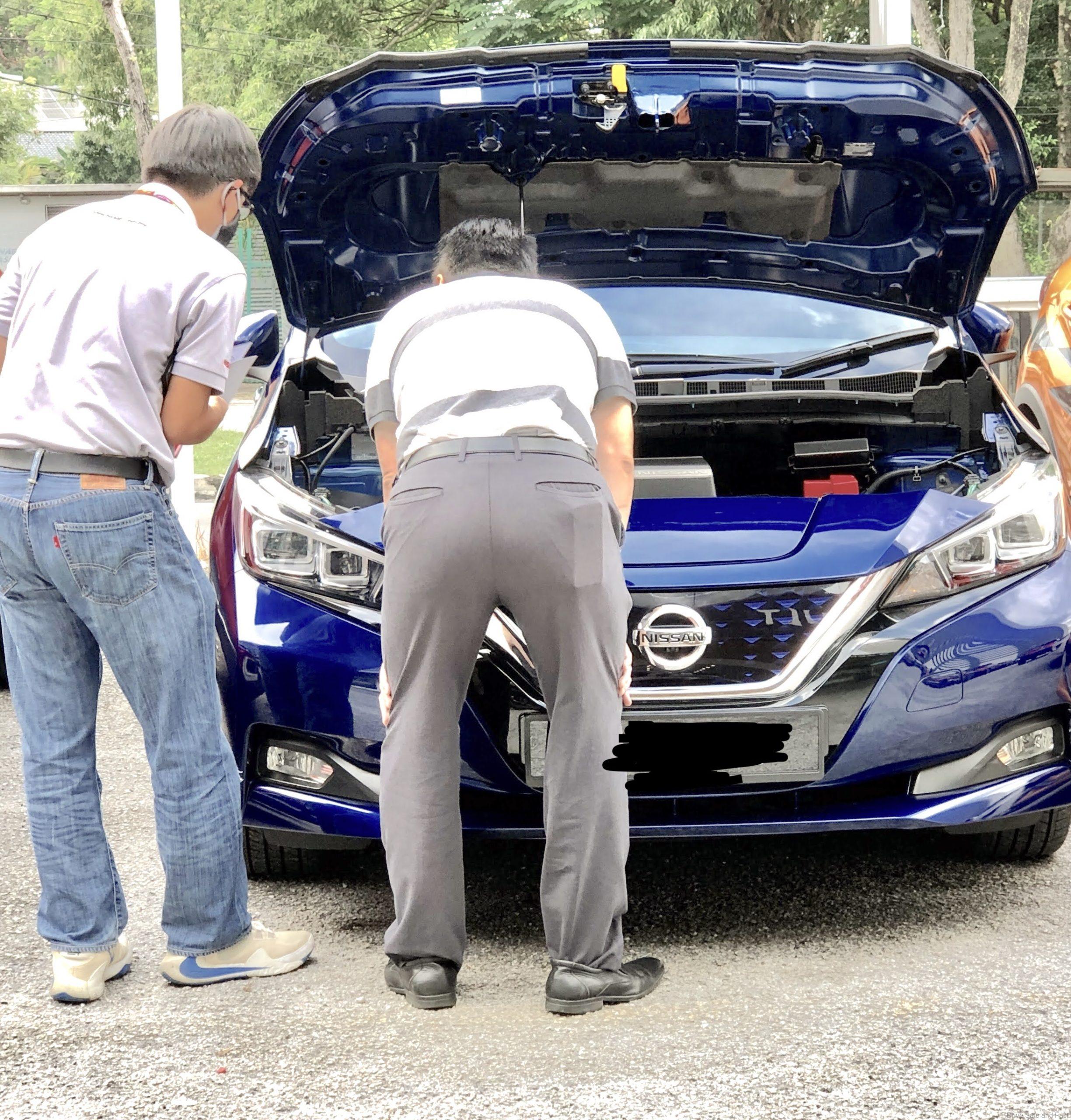 Meanwhile, a common scene at a used car dealership. Men looking at the engine bay. What are they looking at? Do they even know what to look for? The used car dealer would have done a through cleaning of the engine and lacquered all the black bits in the engine to impress you.