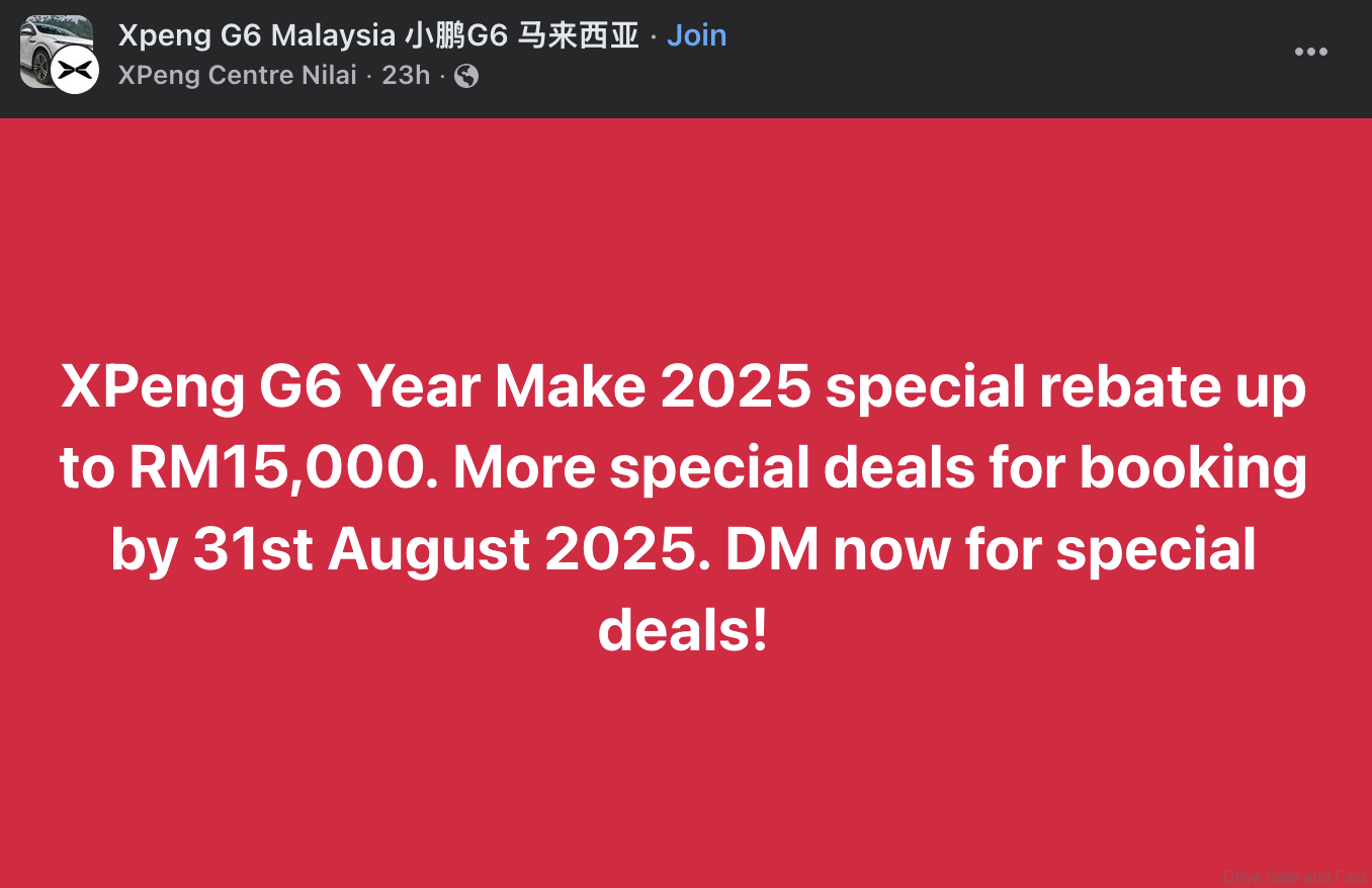 However, there is a slight discrepancy in communication. While the Xpeng Centre highlights a straight RM15,000 rebate, the official Xpeng Malaysia Facebook page instead describes the offer as RM15,000 worth of accessories. At the time of writing, it remains unclear whether buyers can expect a direct discount, a package of accessories, or potentially even a mix of both.