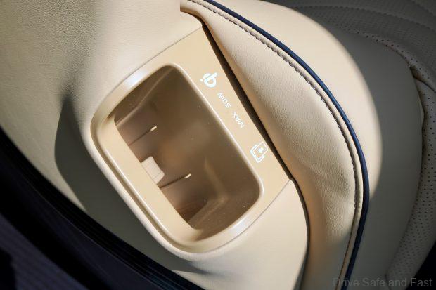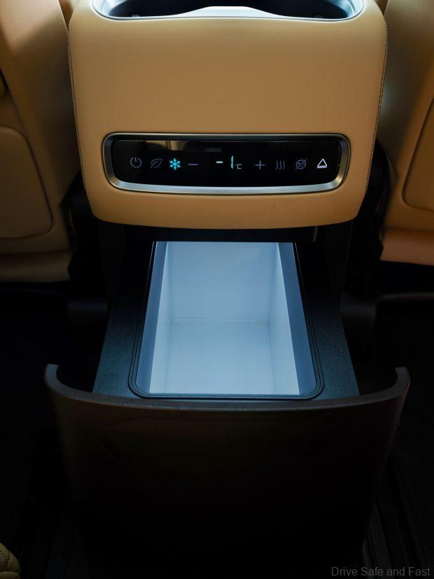 A 14-speaker Dynaudio sound system, THREE 50W wireless phone chargers, a 6.8L fridge/heater, and a negative ion purifier with PM2.5 air filtration.