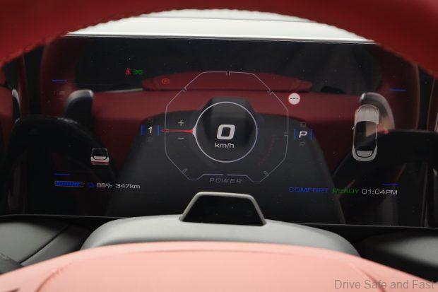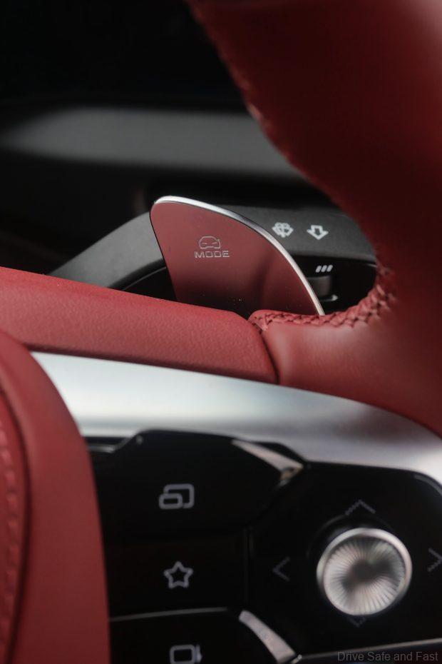 You’ve also got paddle shifters that control the vehicles brake regeneration strength (Kinetic Energy Recovery System or KERS) on the left side and the drive mode on the right side.