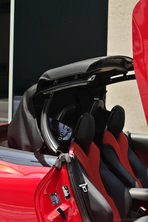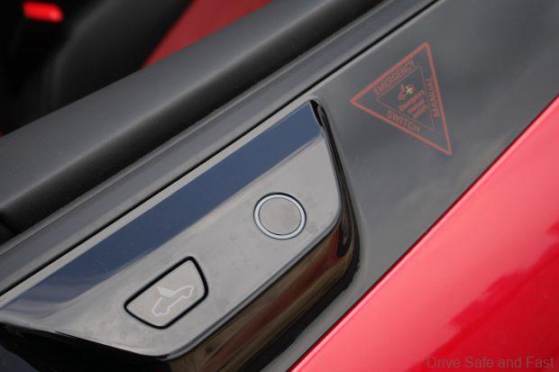 The scissor doors feature ultrasonic sensors to prevent them from colliding into walls or people. It takes a bit of getting used to NOT standing next to the car when opening the doors as they’ll just come to a stop when they detect you there. You need to instead stand around where the rear wheels are and press the button from there, thankfully it’s a two-door, so it’s not as difficult as you might think.