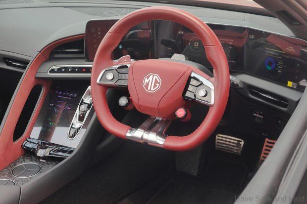If I may level one more criticism that’s design related, it would be this contrived need to reach for MG’s heritage. The side sill has a little decal celebrating MG’s 100th Anniversary and the key fob has ‘The Roaring Raindrop’ embossed on it. Even as an enthusiast I had to Google what exactly that was and I’m still not convinced that the Cyberster is positioned as a spiritual electric successor to that land speed record project. It comes across as a little desperate. They ought to just carry on with creating new vehicles that will define that NEXT 100 years of the brand’s success without needing to remind everyone that it’s not the same company it used to be 100 years ago.