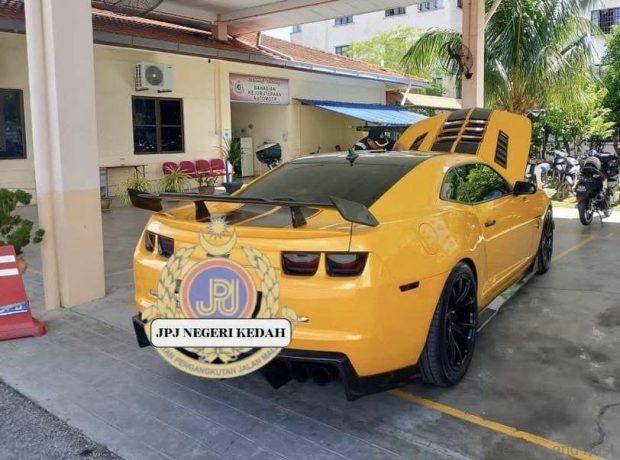 The Kedah Road Transport Department (JPJ) has seized a yellow Chevrolet Camaro, highly resembling the famous “Bumblebee” character from the Transformers movie franchise, during a targeted enforcement operation known as Ops Luxury.