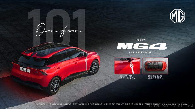 - MG4 101 Edition: Commemorating MG’s 101st anniversary, this special celebratory version of the award-winning all-electric hatchback features a distinctive Union Jack roof design and an exclusive “One of one” decal. It is available exclusively on the MG4 Lux Extended variant in Dynamic Red and Holborn Blue, featuring a dual-tone interior.