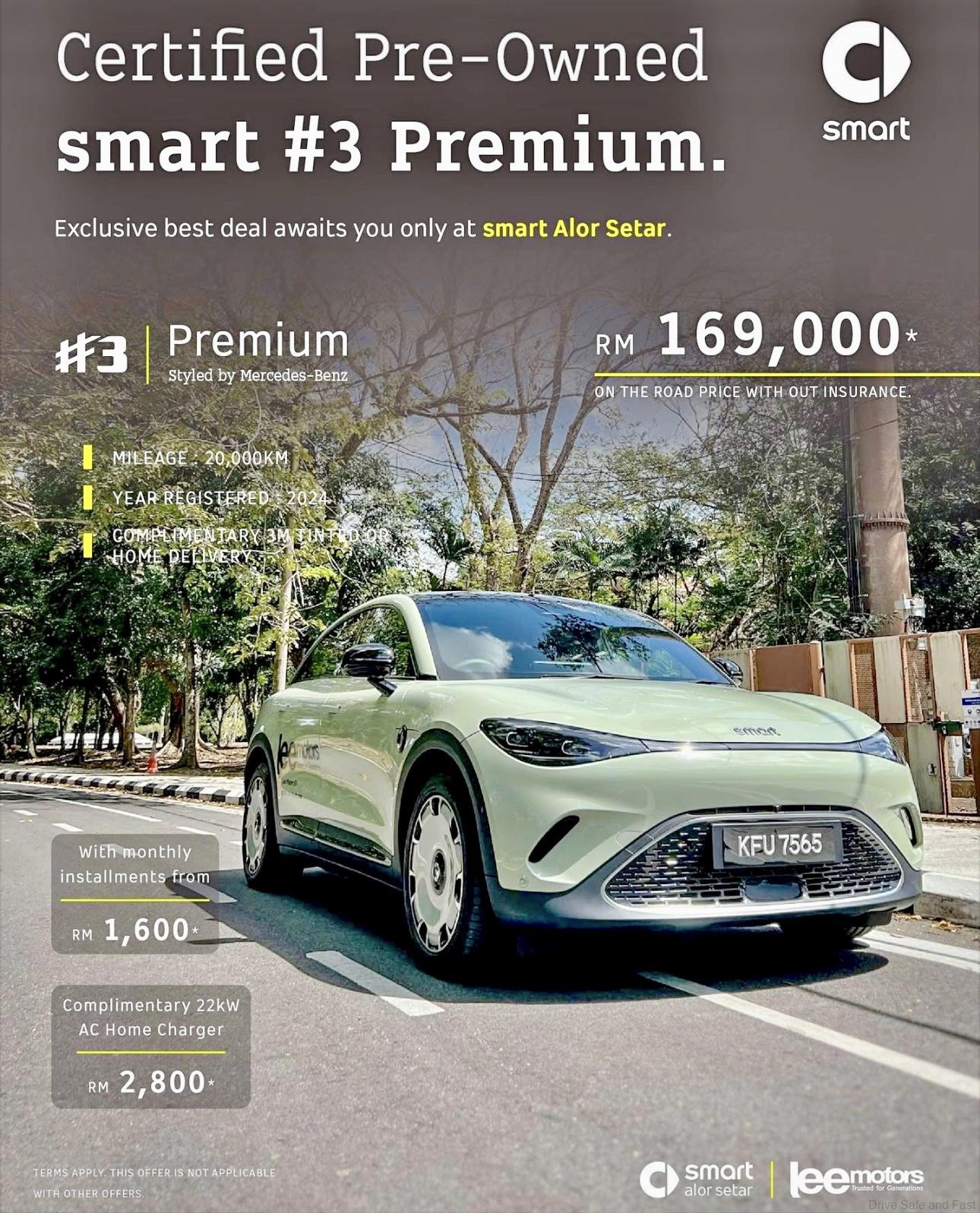 Certified Pre-Owned smart #3 Premium now at an unbeatable deal! From only RM169,000 or monthly from RM1,600 exclusively at smart Alor Setar.