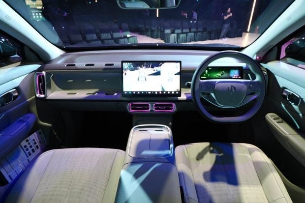 The vehicle’s wedge shape helps it achieve its Cd rating of just 0.265. Both variants get a vehicle-to-load (V2L) charging capability of 3.3kW.