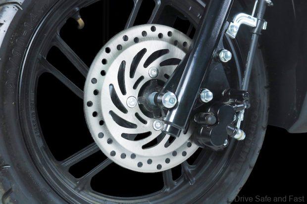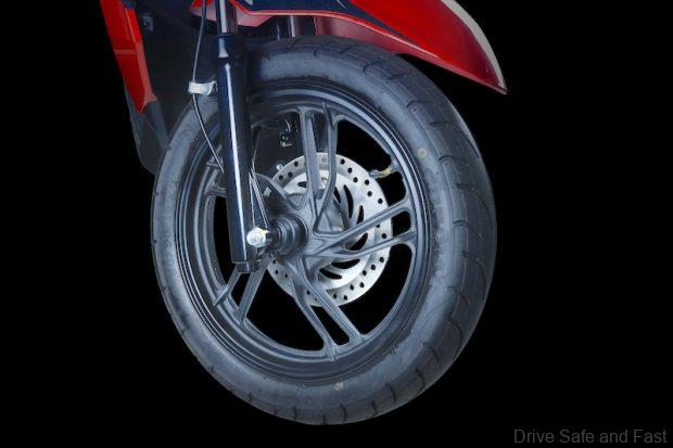 The Aero E uses tubeless tyres paired with lightweight rims for better stability and comfort. The front tyre is sized 90/90 14 and the rear uses a 100/90 14 setup, supported by both 14-inch rims with 90/90 tyre size at front and 100/90 at rear. This configuration ensures confident handling and smooth performance across typical city road conditions.