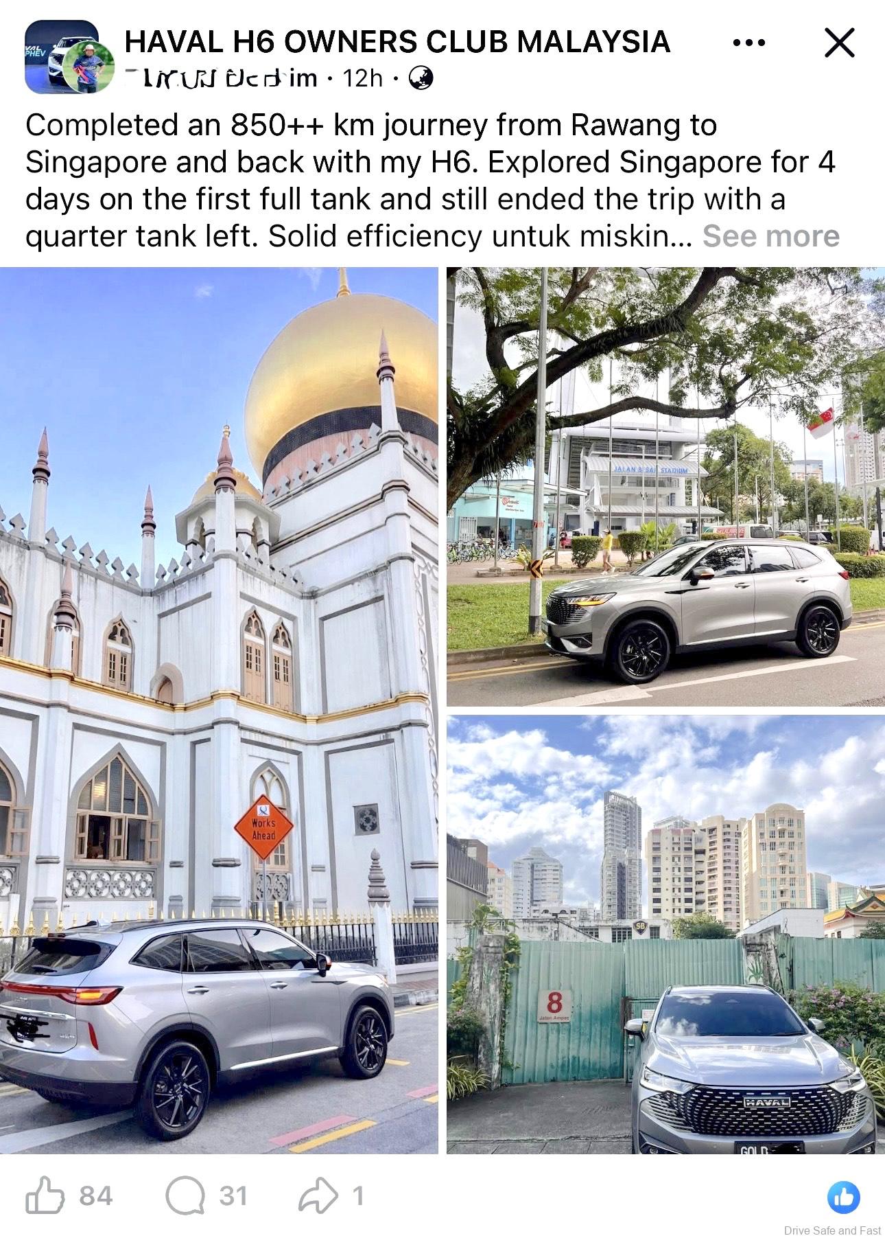 Haval H6 Hybrid owner shares his journey on one tank of fuel from Rawang and Singapore and back with fuel to spare.