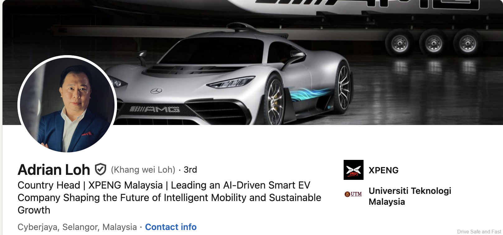 Xpeng has a Malaysian office with a new Country Head, Adrian Loh.