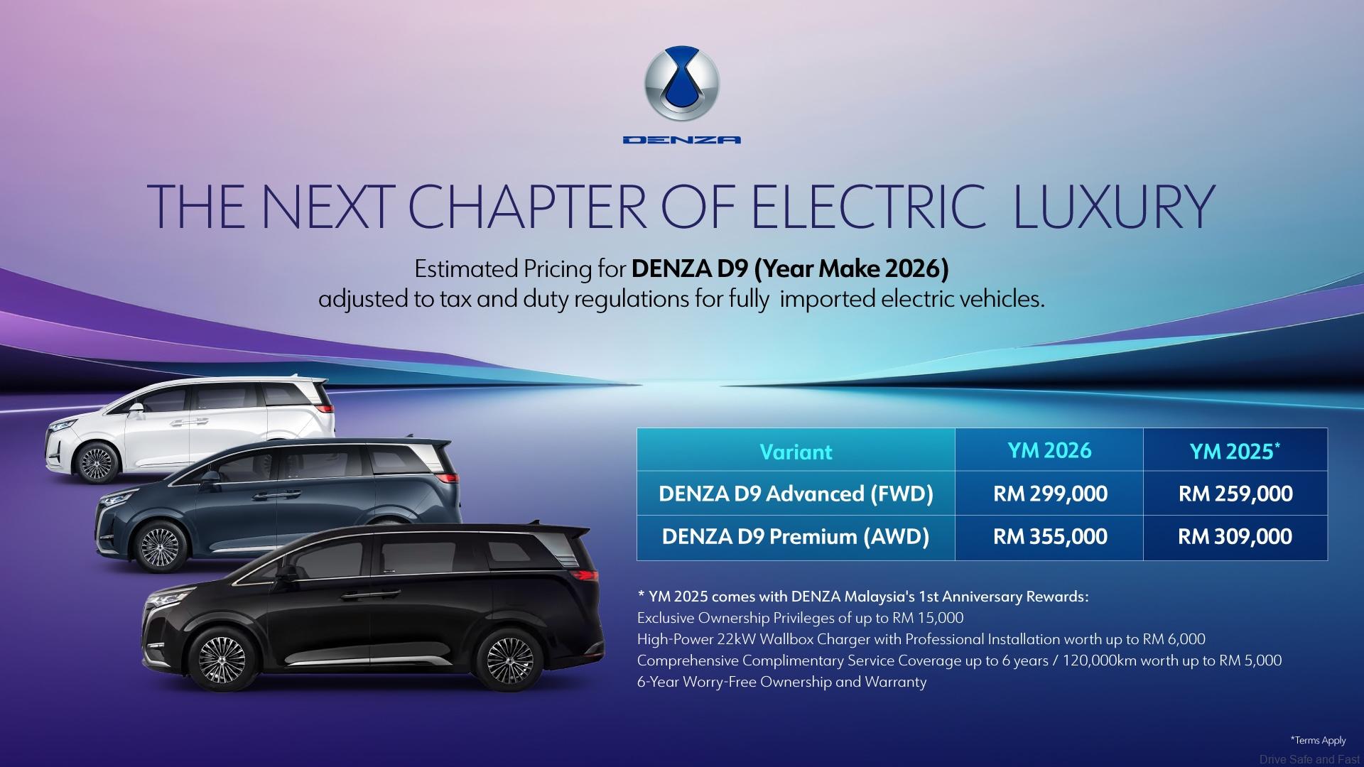 The upcoming 2026 DENZA D9 range will reflect an approximate 15% price increase over the outgoing model. This adjustment is driven primarily by the removal of government tax and duty exemptions for fully imported electric vehicles (CBU) in Malaysia.