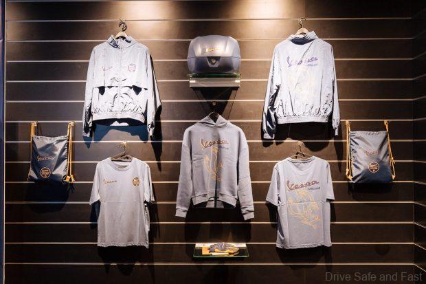 Complementing the scooters is the Vespa Officina 8 Apparel Collection, a workwear-inspired capsule featuring windbreakers, hoodies, and t-shirts designed with technical graphics and the stylised “V” logo reassembled with screws and bolts.