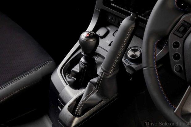 The steering wheel which was developed for improved motorsports operability and features an outer diameter that is slightly smaller than that in the case of the base model and modified steering-wheel-mounted switches laid out independently, drawing on lessons learned from rally. The stitching is in blue, gray, and red (for a tricolor accent).