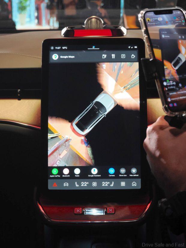 The technological centerpiece is a 14.5-inch portrait-oriented centre touchscreen powered by the Snapdragon® Cockpit Platform, featuring Google built-in (Google Maps, Google Assistant, and Play Store).