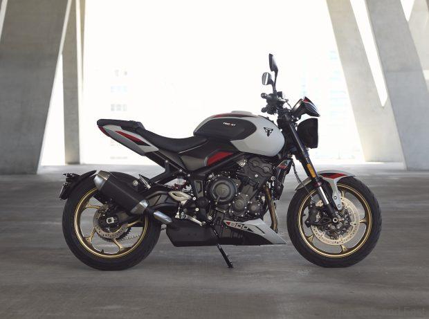 Blending rebellious energy with refined Triumph roadster DNA, its sculpted tank and trim tail create a lean, modern silhouette, while premium finishes, from brushed aluminium to bold colour schemes and contrasting gold-coloured wheels, amplify its dynamic presence. Whether parked kerbside or carving through city streets, the Trident 800 delivers a compelling blend of attitude, performance and precision.
