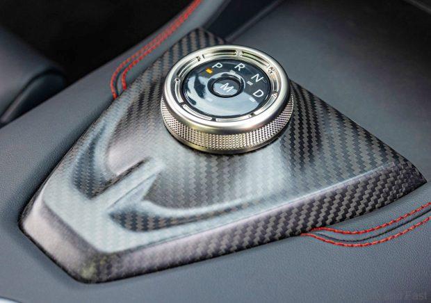 The available Track Pack further enhances the vehicle for circuit driving: Reduces weight by 150lbs, including the removal of rear seats. Includes 3D-printed titanium shift paddles and gear selector knob. Lightweight magnesium strut tower brace.