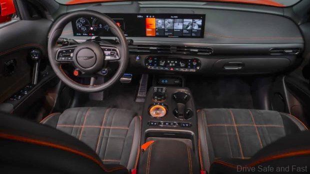 Get inside and it features bucket seats with orange and titanium grey stitching, along with specialised Magma mode digital interfaces.