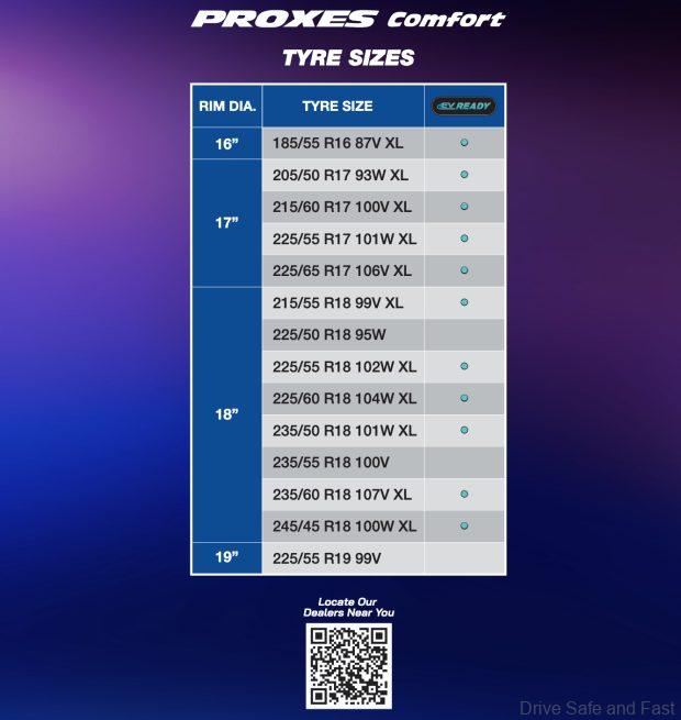 Designed primarily for B, C, and E-segment passenger cars and SUVs, the Proxes Comfort lineup currently ranges from 16 to 19-inch rim diameters.