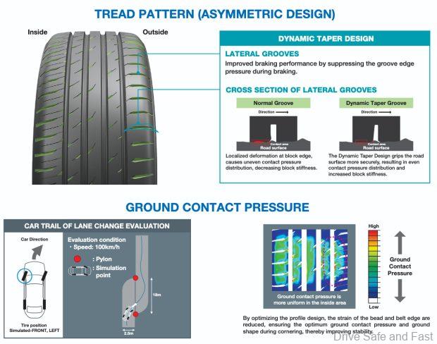 Central to its performance is Toyo Tires’ Dynamic Taper Design. Conventional groove designs can often lead to uneven contact pressure, but this innovative tapering allows the tyre blocks to maintain more consistent contact with the road. This result is a significantly more stable braking experience; compared to its predecessor, the Proxes CF 2, the Proxes Comfort delivers a 13% shorter wet braking distance and an 8% shorter dry braking distance.